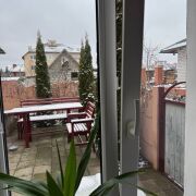 Душевая комната: душевая кабинка, туалет, раковина со встроенной мойкой и зеркалом. Встроенные шкафы, стиральная машина. Топочная. Имеется окно во двор.