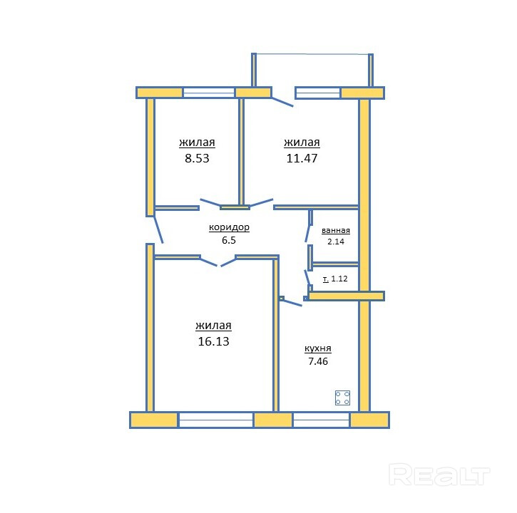 Пинск, 3-комн. квартира, ул. Центральная. Без ремонта.