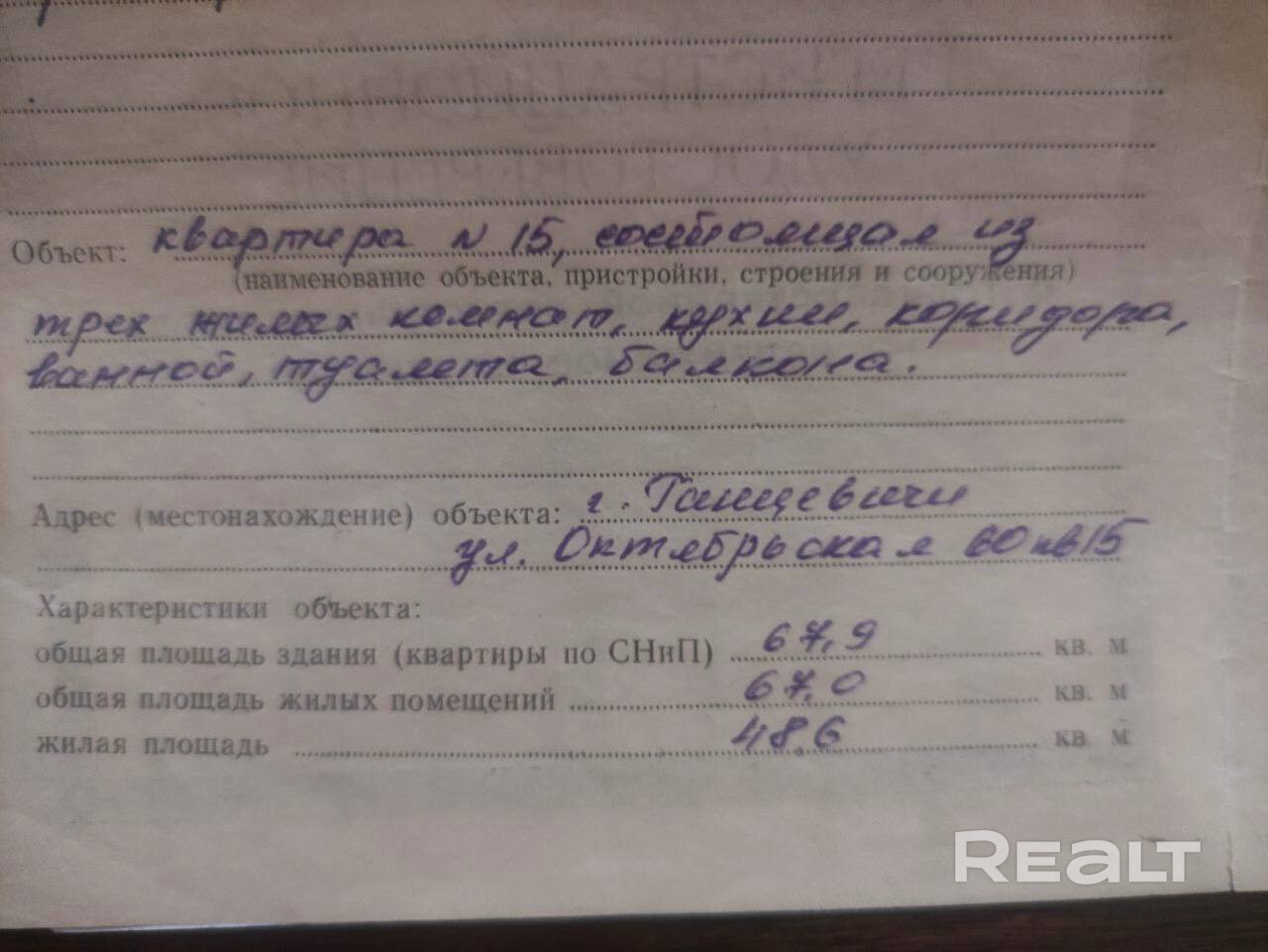 Купить 3-комнатную квартиру, г. Ганцевичи, ул. Октябрьская, 60