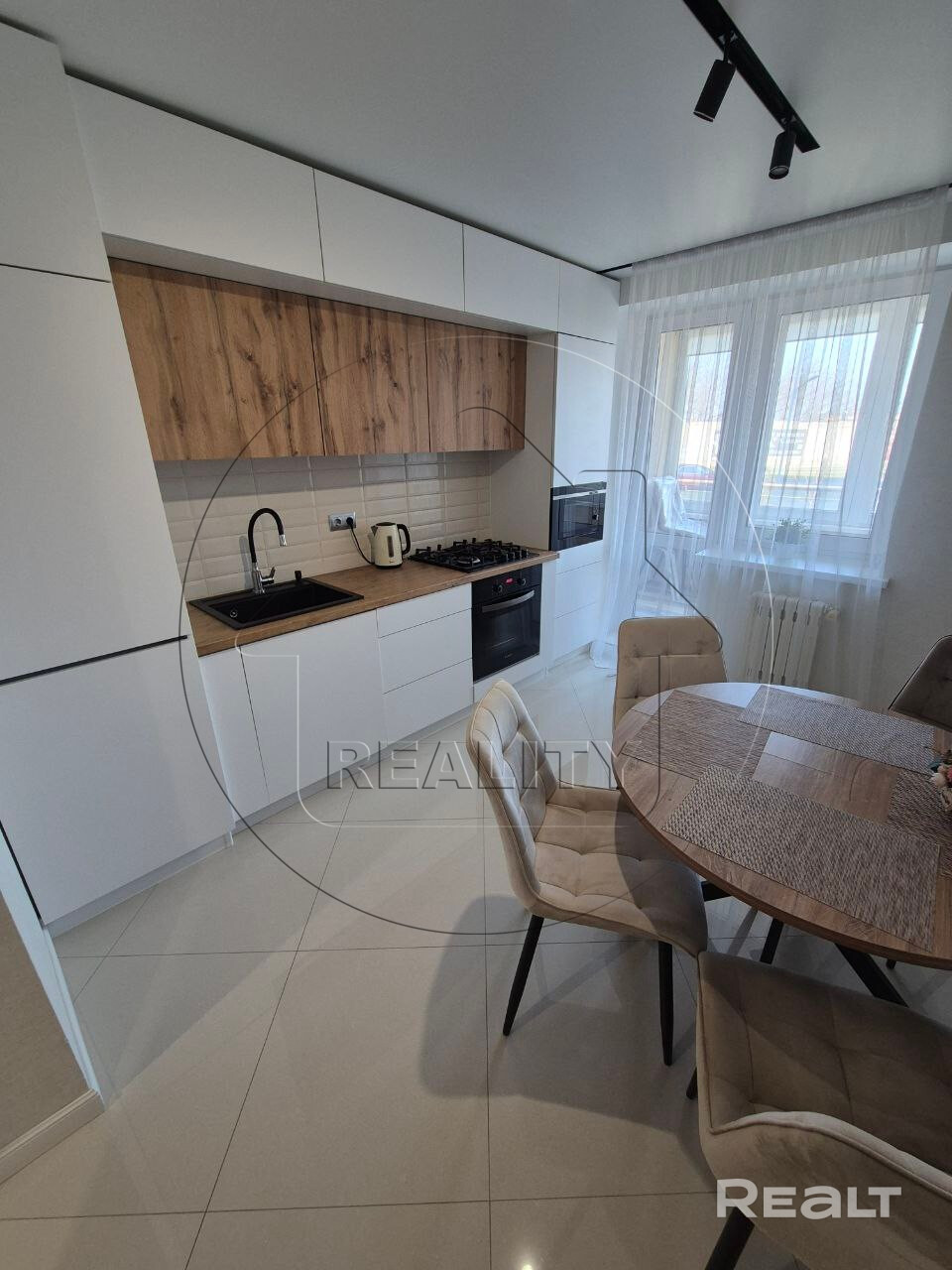 Просторная кухня оборудована всей необходимой техникой и имеет достаточно места для обеденной зоны, где вы можете собираться с близкими.