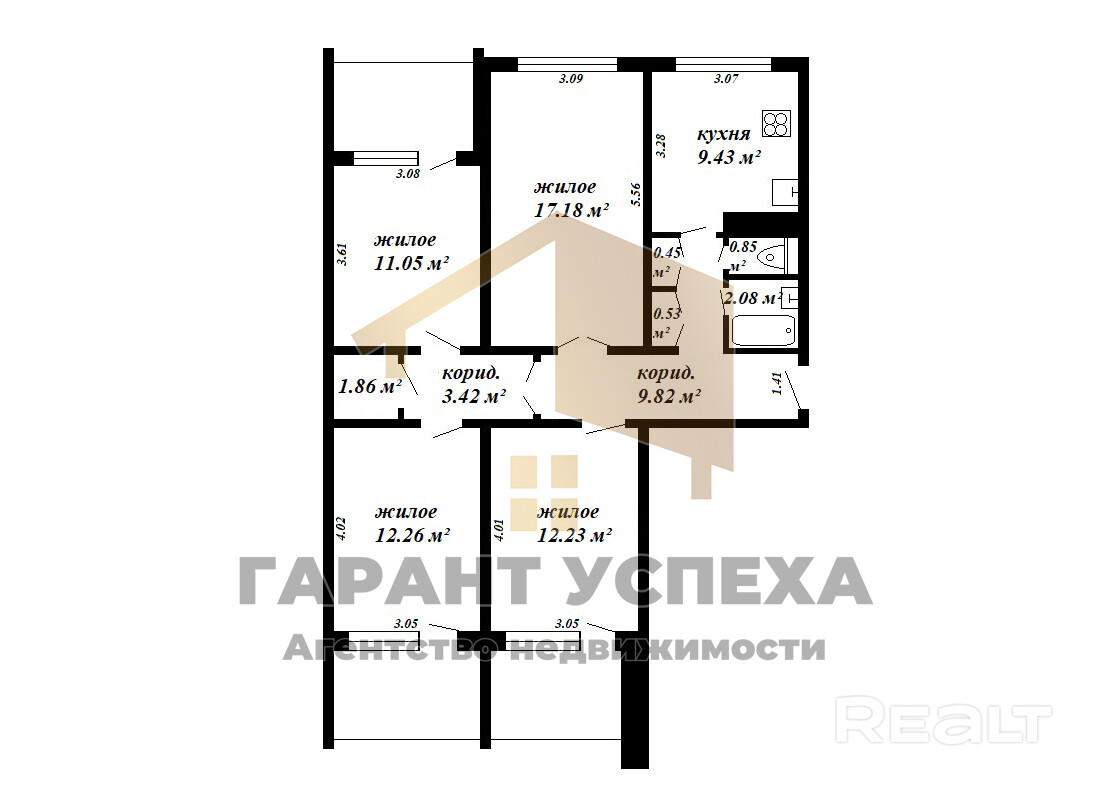 ЧУП «Гарант успеха», УНП 290472700, лицензия №02240/137 от 20.10.2006 г., договор на оказание риэлтерских услуг №152/1 от 18.03.2025 г.