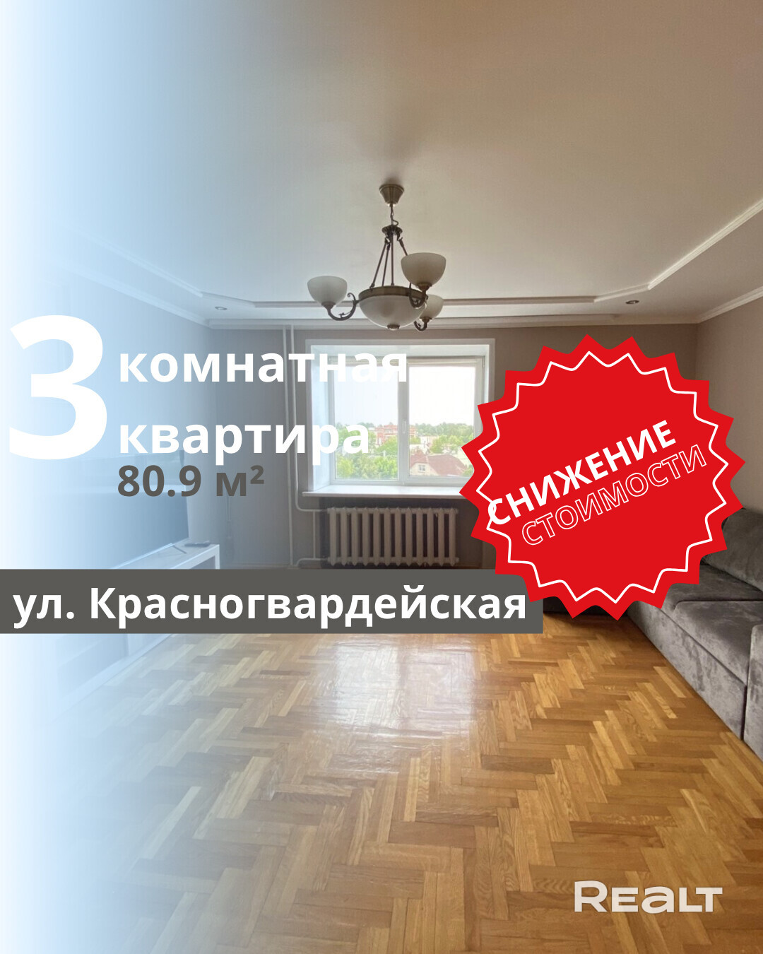 Продается 3-комнатная квартира по улице Красногвардейской на Граевке, расположенная на 4 этаже 5-этажного кирпичного дома, построенного в 2000 году. Общая площадь квартиры составляет 80,9 м2, из которых жилая площадь — 46,9 м2, а кухня — 14,1 м2. Квартира имеет балкон, выходящий из спальни, раздельный санузел и сарай в подвале. Подъезд чистый и просторный. Квартира находится в отличном состоянии, очень уютная и ухоженная. Внутри установлены стеклопакеты и металлическая входная дверь, на полу — паркет и плитка, потолок выполнен из гипсокартона с многоуровневой конструкцией, межкомнатные двери — из массива дерева. В ванной комнате предусмотрены ванна и душевая кабина с качественной сантехникой. Район тихий и спокойный, рядом находятся детский сад, магазины и поликлиника.