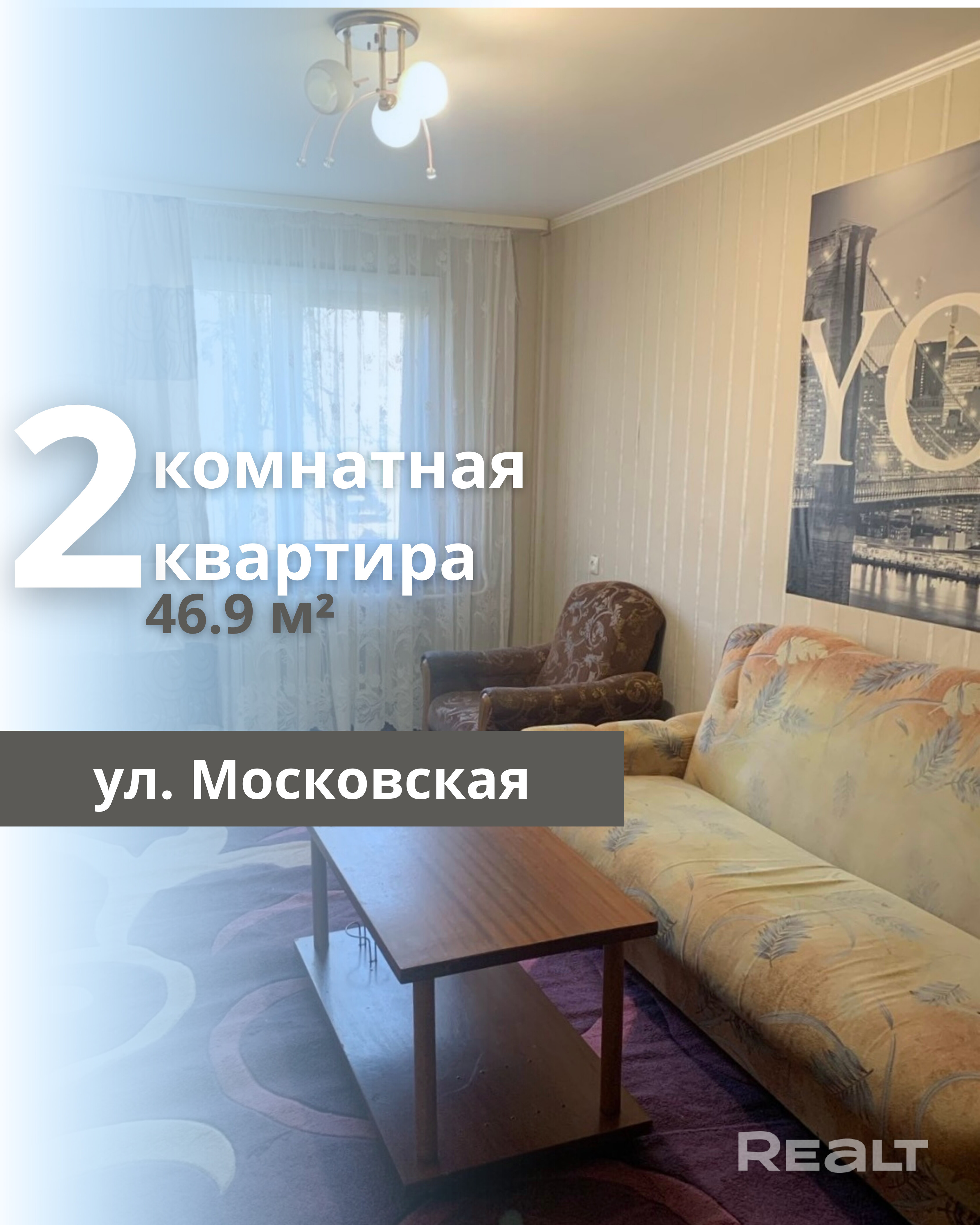 Продается 2-комнатная квартира в микрорайоне Восток на улице Московская. Общая площадь квартиры составляет 46,9 м2, жилая площадь – 31,5 м2, кухня – 5,3 м2. Квартира расположена на первом этаже пятиэтажного панельного дома, построенного в 1969 году.