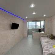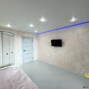 По всей квартире натяжные потолки. В гостиной - двухуровневые.