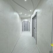Стены в коридоре, кухне и детской комнате - декоративная штукатурка. В гостиной и спальне - виниловые обои.
