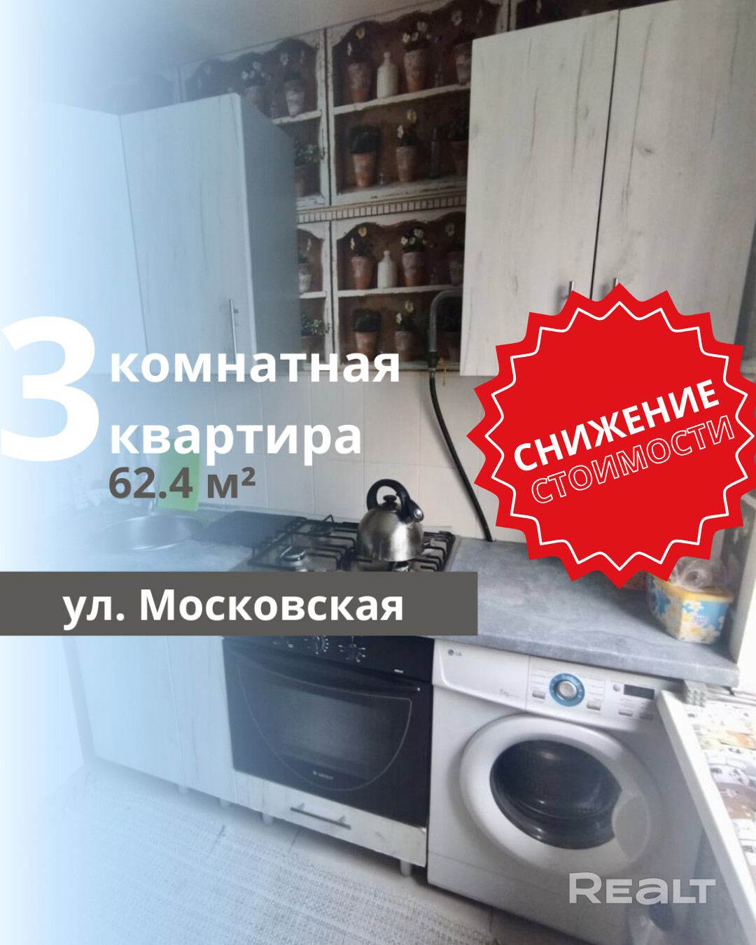 Продается светлая 3-комнатная квартира на улице Московская, расположенная в микрорайоне Восток. Квартира находится на 3 этаже 5-этажного панельного дома, построенного в 1971 году. Общая площадь составляет 62.4 кв.м, жилая — 45.6 кв.м, кухня — 5.5 кв.м. В квартире раздельный санузел и балкон. Выполнен хороший ремонт: полы покрыты ламинатом и плиткой, потолки — натяжные, а окна — пластиковые. Удобное расположение обеспечивает близость ко всей необходимой инфраструктуре, что делает эту квартиру отличным вариантом для комфортной жизни.