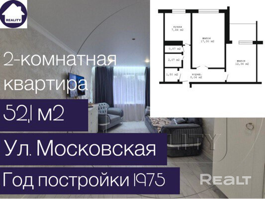Предлагаем купить светлую просторную 2-х комнатную квартиру по ул. Московская (Восток) 1975 г. п. 6/9 этажного панельного дома. Общая площадь по СНБ- 52,1 кв. м, общая – 49,9 кв. м., жилая – 29,6 кв. м., кухня – 7,4 кв. м.