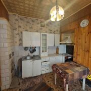 Квартира в жилом состоянии. Входная дверь деревянная, два окна заменены на пластиковые. На полу - доска, сверху - линолеум. Стены оштукатурены, частично обиты ДСП и оклеены обоями. В одной комнате натяжной потолок, в остальных поклеены касетоны и обои. Помещения отапливаются 2 печками. Туалет на улице.