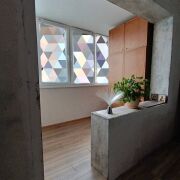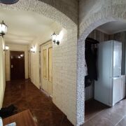 Полы выполнены из плитки и ламината, стены отделаны обоями и декоративной отделкой в коридоре. Окна ПВХ, входная дверь металлическая, в санузле использована плитка современного образца.