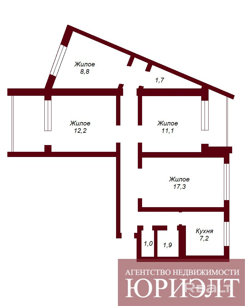 Общая площадь: кв. 75,3. Жилая площадь: 49,4. Площадь кухни: 7,2