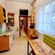 Двухкомнатная квартира в блокированном жилом доме 1917 года постройки в северо-западной части г. Бреста. Стены из силикатного кирпича, фасад оштукатурен, окрашен, кровля – шифер. Установлены окна ПВХ, межкомнатные двери - экошпон и дерево. Общая площадь 46,3 кв.м, жилая 32,6 кв.м. По плану в квартире две жилые комнаты, кухня 7,5 кв.м, вспомогательные помещения. Комнаты в жилом состоянии: полы – окрашенная доска и ламинат, стены оклеены обоями.