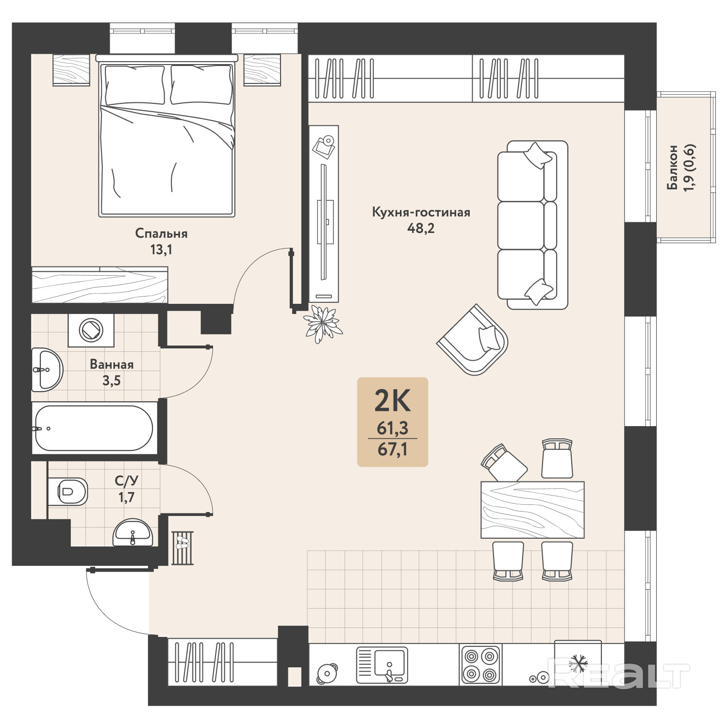Продается квартира напрямую от застройщика площадью 67.1 квадратных метров, в «Дом на Машерова» Доступны банковские кредиты. Подробнее на сайте