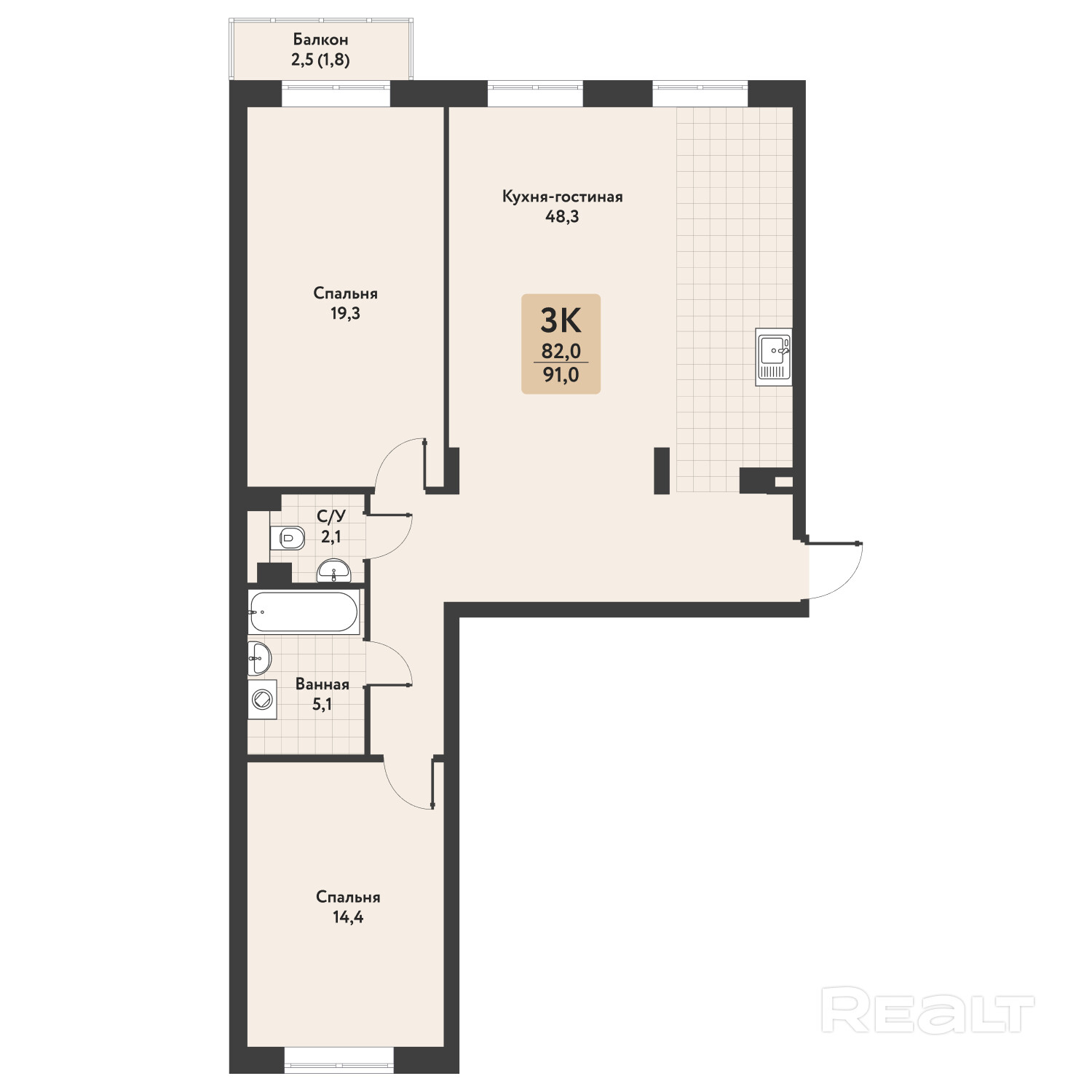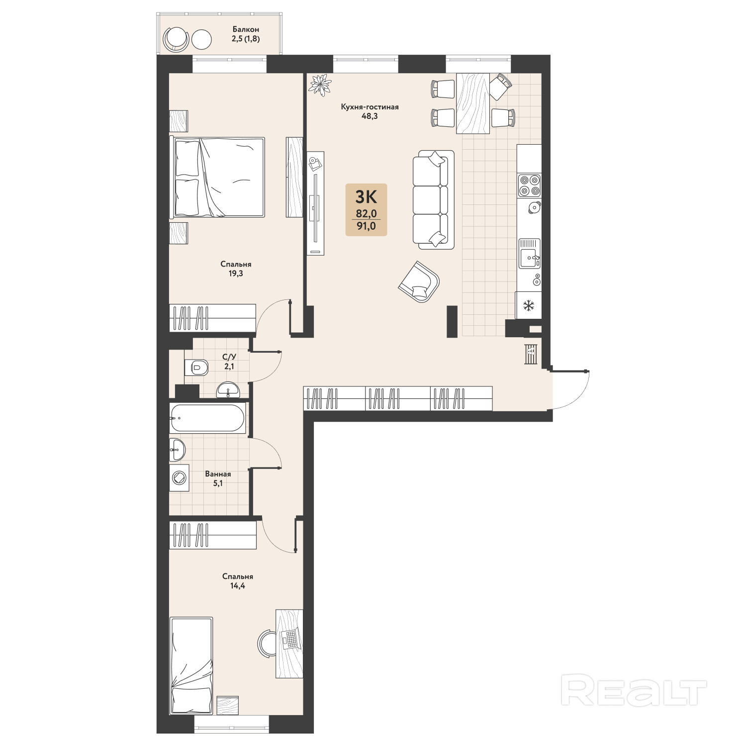 Продается квартира напрямую от застройщика площадью 91 квадратных метров, в «Дом на Машерова» Доступны банковские кредиты. Подробнее на сайте https://masherova.aironinvest.by/