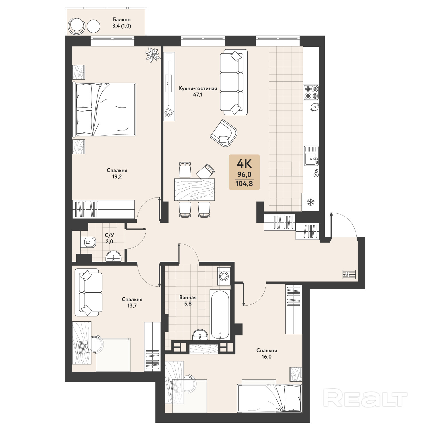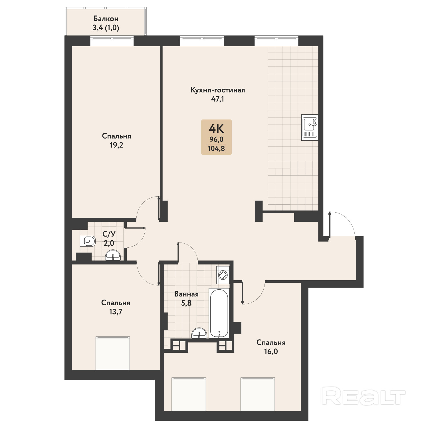 104.8 м²