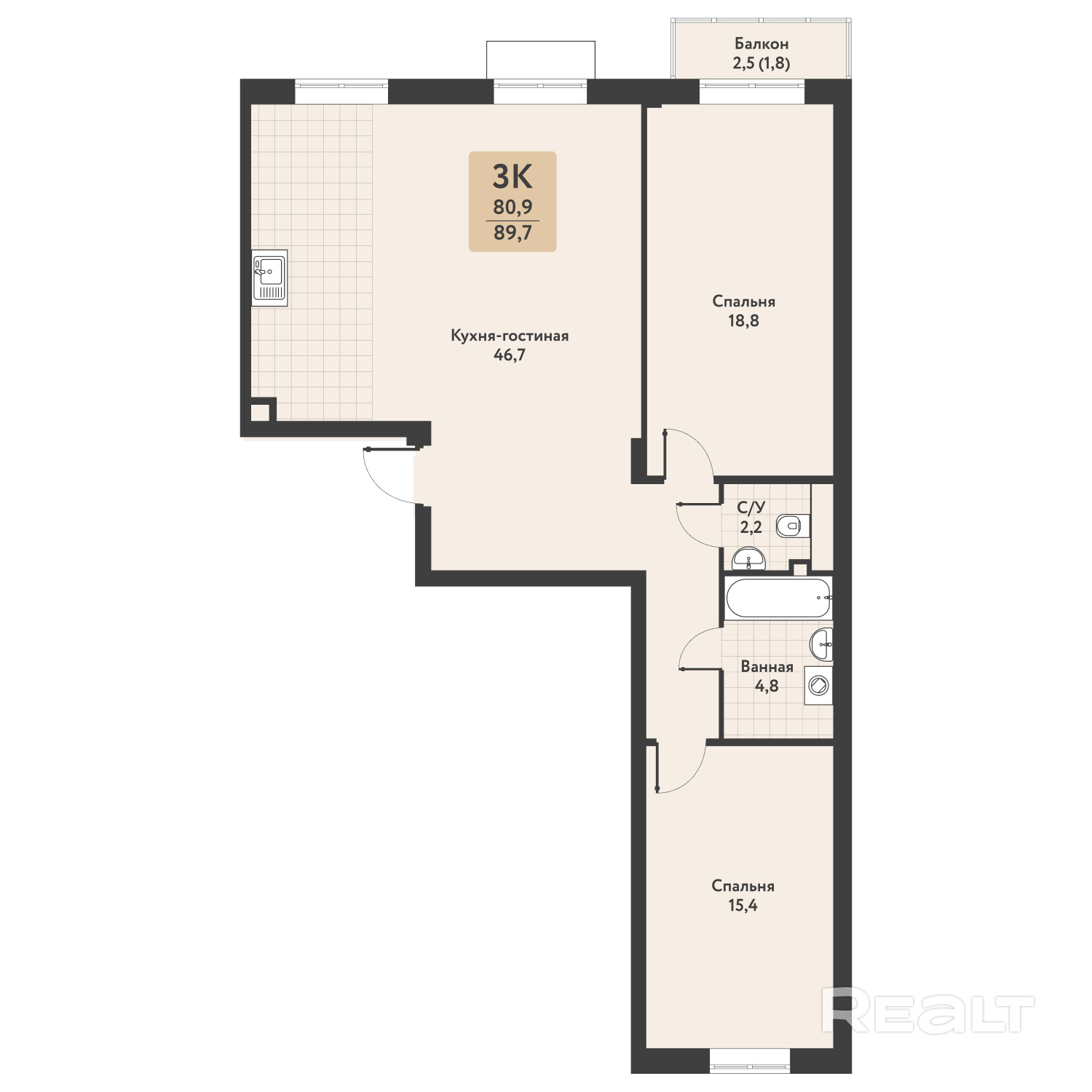 Продается квартира напрямую от застройщика площадью 89.7 квадратных метров, в «Дом на Машерова» Доступны банковские кредиты. Подробнее на сайте https://masherova.aironinvest.by/