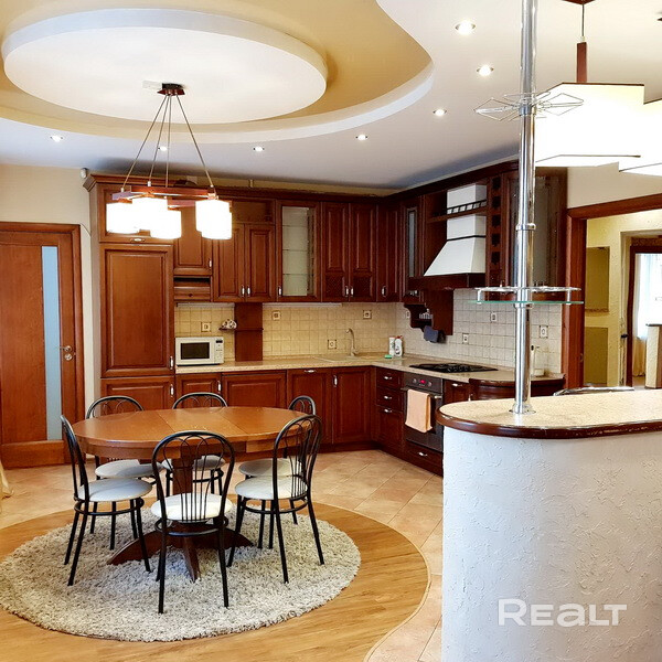 Продается трёхкомнатная квартира с дизайнерским ремонтом в самом центре года. Квартира расположена на пятом этаже 5-этажного кирпичного дома 2008 года постройки. В доме установлен лифт, который соответствует современным требованиям к комфорту и функциональности. В квартире установлены стеклопакеты, окна - на разные стороны. Входная дверь - металлическая, межкомнатные – из массива дерева. Общая площадь 127,7 кв.м, жилая 69,2 кв.м. Улучшенная планировка: две спальные комнаты с общей застекленной лоджией, напротив комнат - гостиная 35,3кв.м. объединена с кухней-столовой 20,0 кв.м, два санузла, сауна. Мебель, фирменная бытовая техника и предметы декора остаются новым владельцам. Многоуровневые потолки из гипсокартона 2,59 м с разноплановой системой освещения, полы - ламинат и плитка, стены оклеены обоями. Для декоративного оформления использованы имитация каменной кладки, художественная роспись. Санузел облицован современной керамической плиткой, заменены металлические трубы, полотенцесушитель, (металл), акриловая угловая ванна, в сауне - электрическая печь.