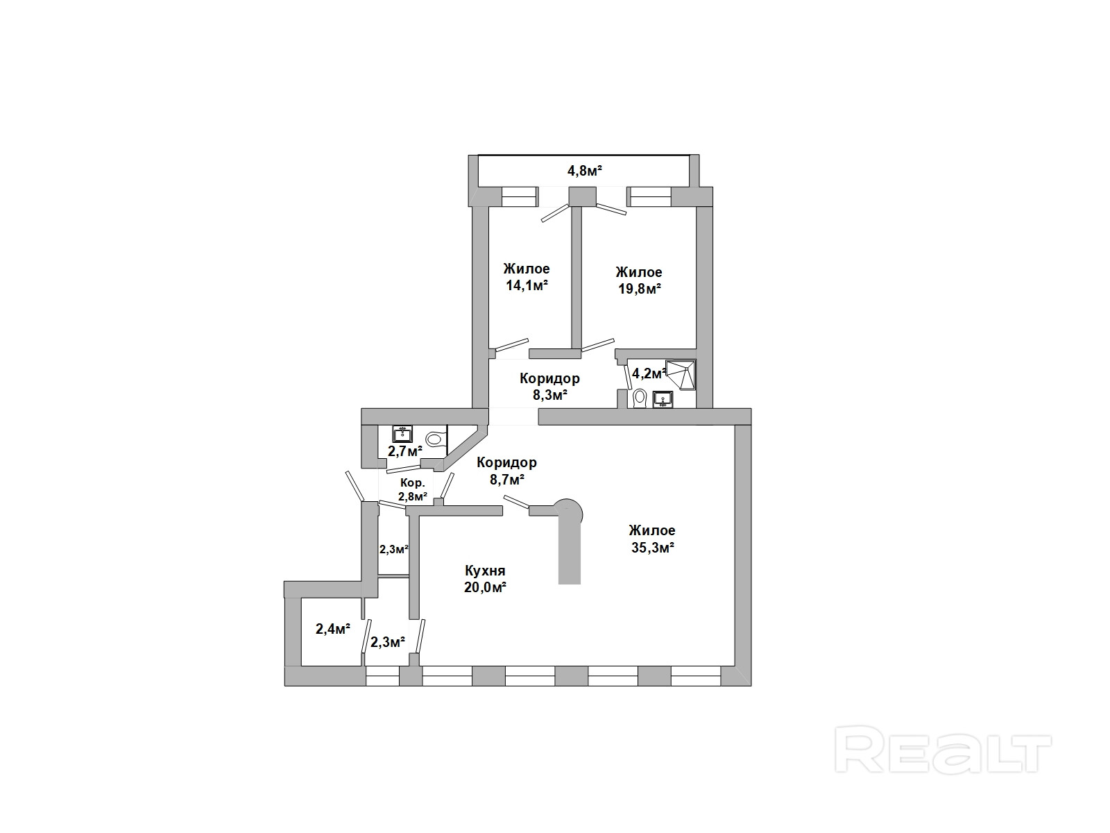 Трехкомнатная квартира, Комсомольская ул. - 250518