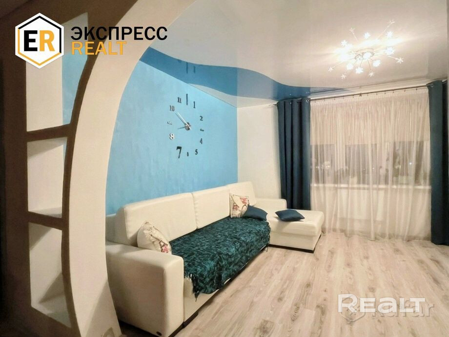 Предлагается к продаже эксклюзивная комфортабельная четырёхкомнатная квартира по ул. Парковой в г. Кобрине. Квартира расположена на 4-ом этаже пятиэтажного кирпичного дома 2015 года постройки. Квартира не угловая, очень тёплая, ориентирована на две стороны (северо-запад и юго-восток). Квартира с улучшенным планировочным решением: три раздельные комнаты, большая кухня-гостиная 31.2 кв.м., два санузла (раздельный и совмещённый), вместительная коридор, две лоджии, есть кладовая. Квартира с хорошим ремонтом: потолок - двухуровневый из гипсокартона с точечным освещением; напольное покрытие в комнатах и коридоре - ламинат (положен на стяжку), в санузле пол из плитки; стены в комнатах оклеены обоями, стены в санузле облицованы современным кафелем; окна - ПВХ-профиль; межкомнатные двери - МДФ, входная дверь - металлическая; лоджия застеклена. Квартира оборудована телефоном, домофоном, интернетом, установлены приборы учёта воды и электроэнергии, регулируемая система отопления. Чистый и аккуратный подъезд, отдельный тамбур, спокойные и приветливые соседи. Дом и придомовая территория обслуживаются товариществом собственников, за квартирой закреплена кладовая в подвале. Дом расположен в глубине жилой застройки, вдали от шумных улиц. Благоустроенный зелёный двор с парковкой и детской площадкой под видеонаблюдением. Современный район с развитой инфраструктурой и транспортным сообщением: в шаговой доступности начальная школа-детсад, супермаркеты "Санта" и "Евроопт", KFC, аптеки, спорткомплекс, автовокзал, остановки общественного транспорта, 10 мин до городского парка. Торг при просмотре!!!