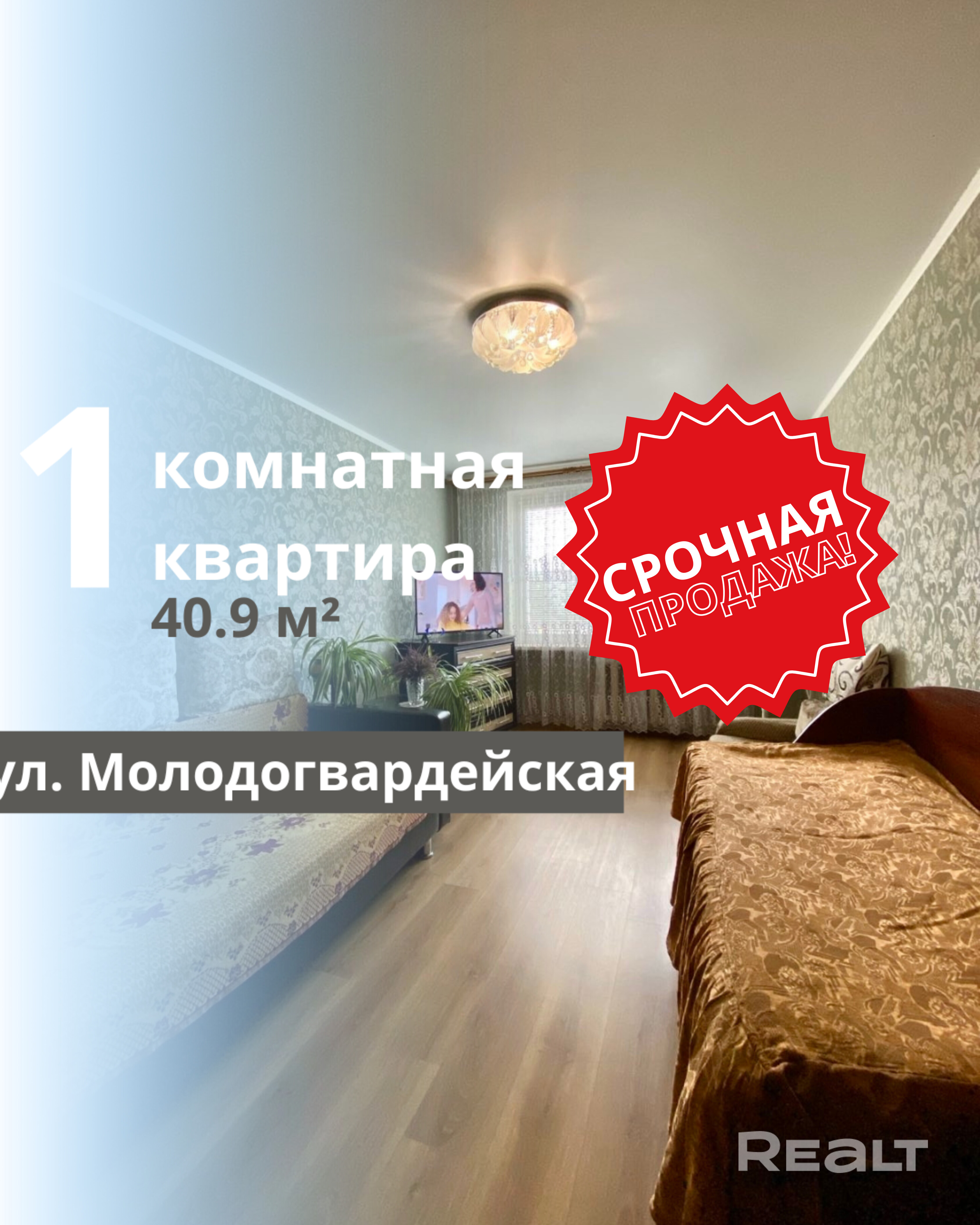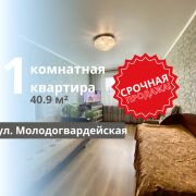 Продается 1-комнатная квартира на Молодогвардейской, построенная в 1997 году, расположенная на третьем этаже пятиэтажного панельного дома. Общая площадь квартиры составляет 40,9 квадратных метров, из которых 17 квадратных метров занимает комната и 9 квадратных метров — кухня. Квартира находится в хорошем жилом состоянии: санузел раздельный, трубы заменены. Входная дверь металлическая, полы выполнены из ламината в комнате и линолеума на кухне. Потолки оформлены касетонами в кухне и коридоре, а в комнате установлен натяжной сатин. Стены оклеены обоями. Просторный коридор и прихожая создают комфортное ощущение пространства. Лестничная площадка большая, подъезд чистый, а придомовая территория ухоженная, с обширной парковкой и современной детской площадкой. Дом расположен в глубине двора, а окна квартиры выходят на зеленую зону.