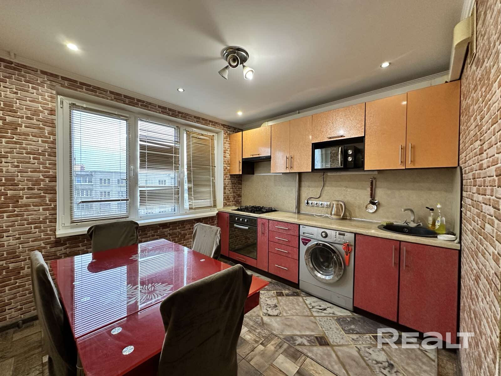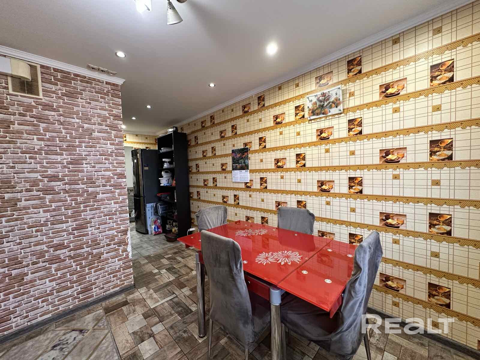 Четырехкомнатная квартира в центре Бреста (ул. Краснознаменная). Общая площадь 88,5 м кв, жилая 52,4 м кв, кухня 9,5 м кв. 5 этаж из 9, панель. Просторная квартира состоит из 4 - х жилых изолированных комнат, кухни, кладовки, раздельного санузла, 3 лоджий. Входная дверь металлическая, окна ПВХ, межкомнатные двери деревянные, лоджии остеклены. Квартира в жилом состоянии. Потолки натяжные с точечными светильниками. Все стены в квартире выровнены. В трех жилых комнатах стены оклеены обоями, в одной спальне и в коридоре стены подготовлены к оклейке обоями. На полу положен ламинат. Возможна продажа со всей мебелью. Квартира находится в районе с развитой инфраструктурой. В одном дворе с домом есть садик, школа, магазины, банк, почта, различные кафе, рестораны. Дом расположен рядом с набережной. До остановки общественного транспорта 8 минут пешком.