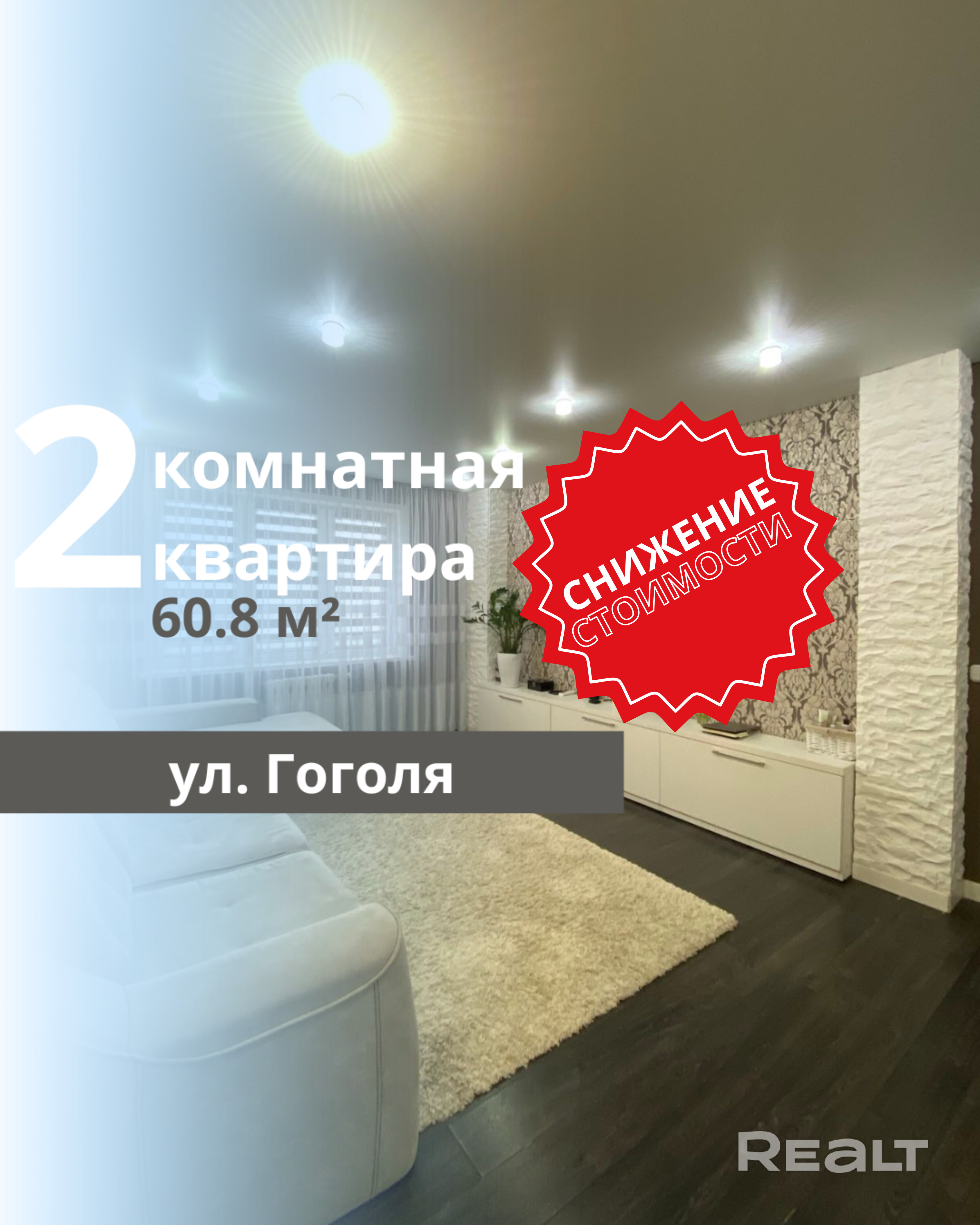 Продается уютная 2-комнатная квартира на улице Гоголя в каркасно-монолитном доме 2016 года постройки. Квартира расположена на 16 этаже 18-этажного дома. Общая площадь составляет 60.8 м2, жилая площадь - 34.4 м2, кухня - 14.0 м2. Санузел раздельный. Улучшенная планировка квартиры позволяет эффективно использовать пространство( кухня увеличена за счет балкона). Тёплая, светлая, уютная квартира с шикарным видом из окна. Центр города (Гоголевское предместье). Современный ремонт, окна - стеклопакеты, полы - ламинат в комнатах, плитка- прихожая, кухня, санузел. Тёплые полы на кухне. Стены - обои, в кухне - венецианская декоративная штукатурка, натяжные потолки. Входная дверь металлическая, внутренние - деревянные. Санузел облицован современной керамической плиткой, удобная большая ванна. Современное освещение, кондиционер. При продаже остается встроенный кухонный гарнитур с бытовой техникой (варочная панель, вытяжка, посудомойка, духовой шкаф), встроенные шкафы в прихожей и комнате. Чистый подъезд оборудован системой видеонаблюдения и облицован плиткой. Пассажирский и грузовой лифт. На площадке оборудовано закрытое место для велосипедов и колясок. Благоустроенный двор с парковочными местами для автомобилей и оборудованной детской площадкой. Престижный район с развитой инфраструктурой: остановки общественного транспорта, школы, сады, поликлиники и больницы, аптеки, супермаркеты