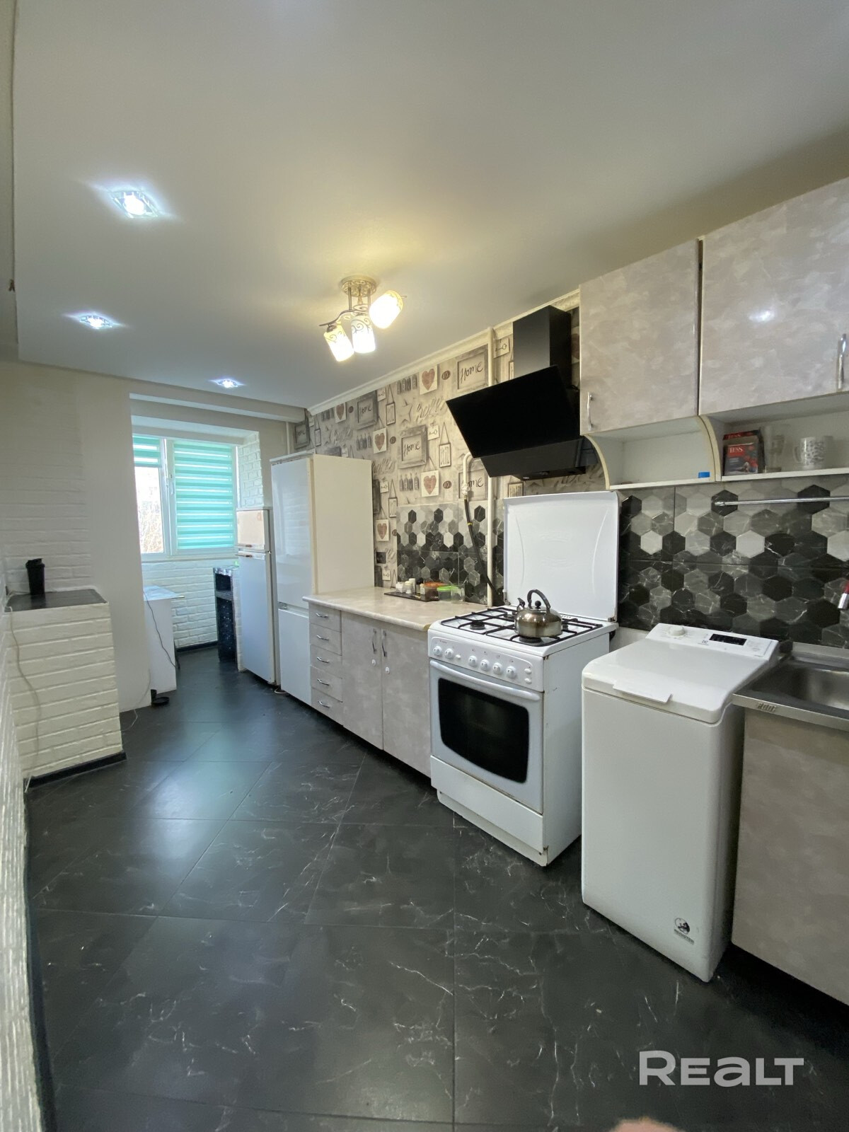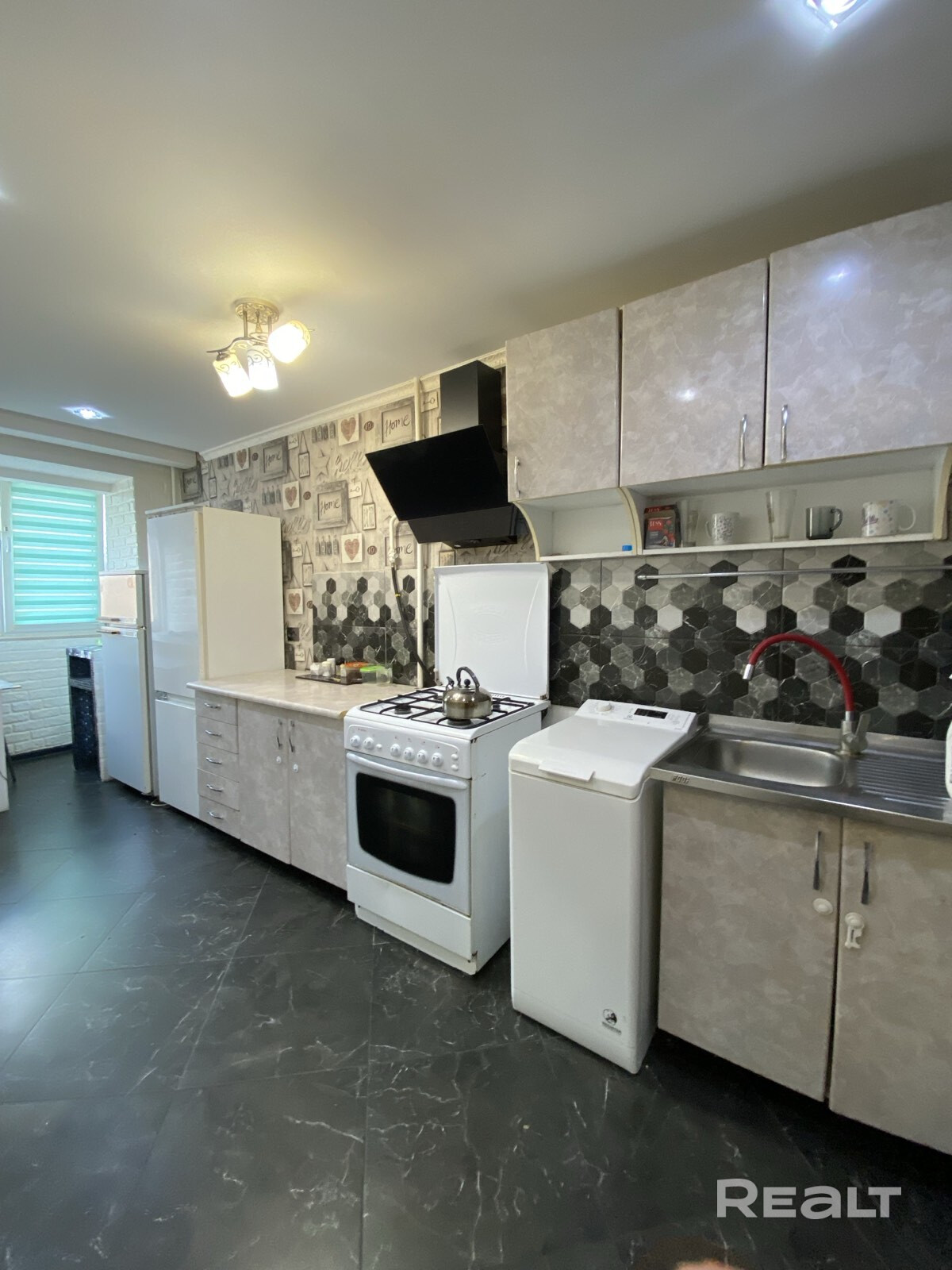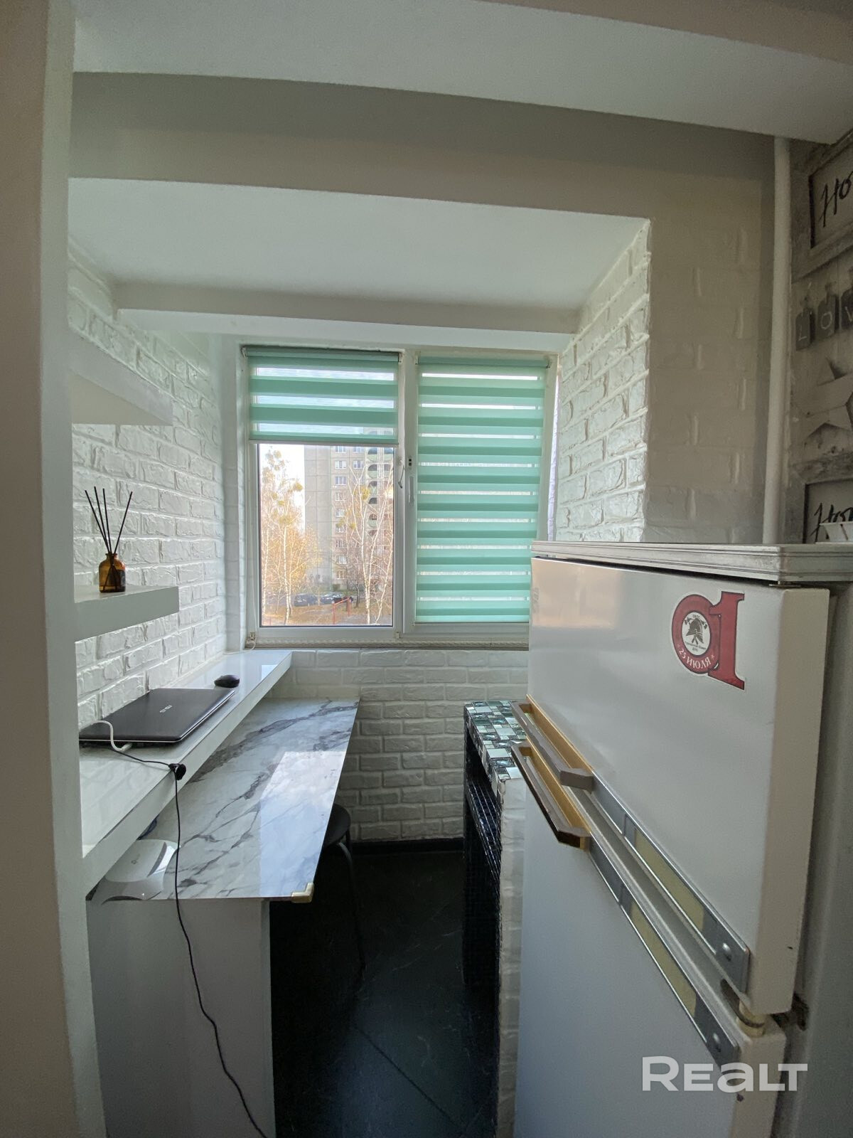 Продается светлая 1-комнатная квартира на улице Суворова в кирпичном доме 1988 года постройки. Квартира расположена на 3 этаже 9-этажного здания и имеет площадь 36,9 кв.м (жилая - 17,7 кв.м, кухня - 9,6 кв.м). Санузел совмещенный, имеется застекленная лоджия, которая оборудована под кабинет. В квартире хороший современный ремонт и удобная планировка. В ней установлены стеклопакеты и металлическая входная дверь. Натяжные потолки, полы из ламината в комнате и плитка в прихожей и кухне создают комфортную атмосферу. Стены оклеены обоями, в кухне дополнительно оформлены декоративным кирпичом, а в санузле используется современная плитка. Дополнительным преимуществом является наличие кладовой, которую можно использовать как гардеробную комнату. В доме чистый и аккуратный подъезд с одним пассажирским лифтом. Во дворе предусмотрена парковка для автомобилей. Удобное расположение дома позволяет пользоваться всеми преимуществами развитой инфраструктуры: в шаговой доступности находятся супермаркеты "Мартин" и "Евроопт", аптека, школа, детский сад, рынок Лагуна и другие объекты сферы обслуживания. Также имеется хорошая транспортная развязка, остановка общественного транспорта находится рядом.