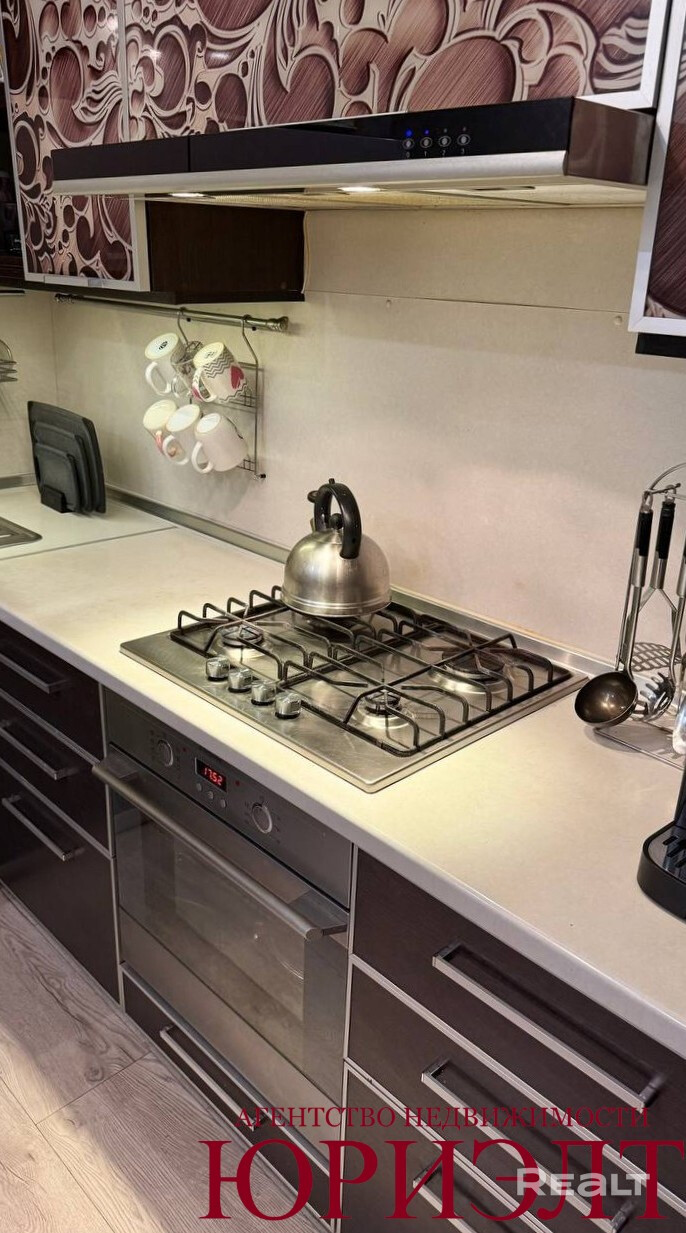 * На кухне встроенная мебель с бытовой техникой;