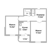 Двухкомнатная квартира на четвертом этаже девятиэтажного панельного дома 1991 в микрорайоне Ковалево. Установлены стеклопакеты(частично), деревянные межкомнатные двери. Общая площадь 55.0 кв.м, жилая 53,3 кв.м. В соответствии с планировкой в квартире две жилые комнаты площадью 17,2 и 12.4 кв.м, раздельный санузел и коридор.