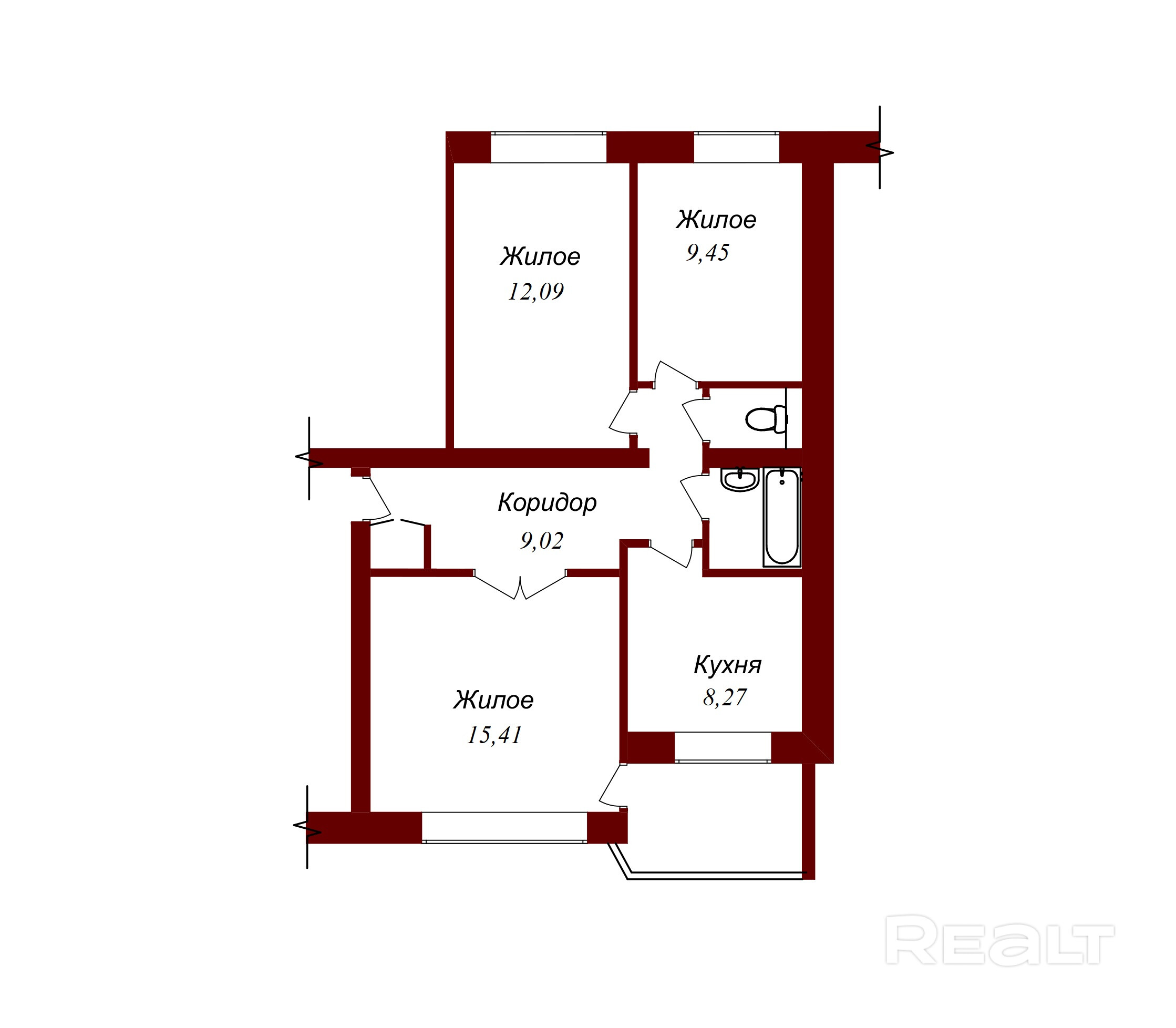 - Раздельных комнат