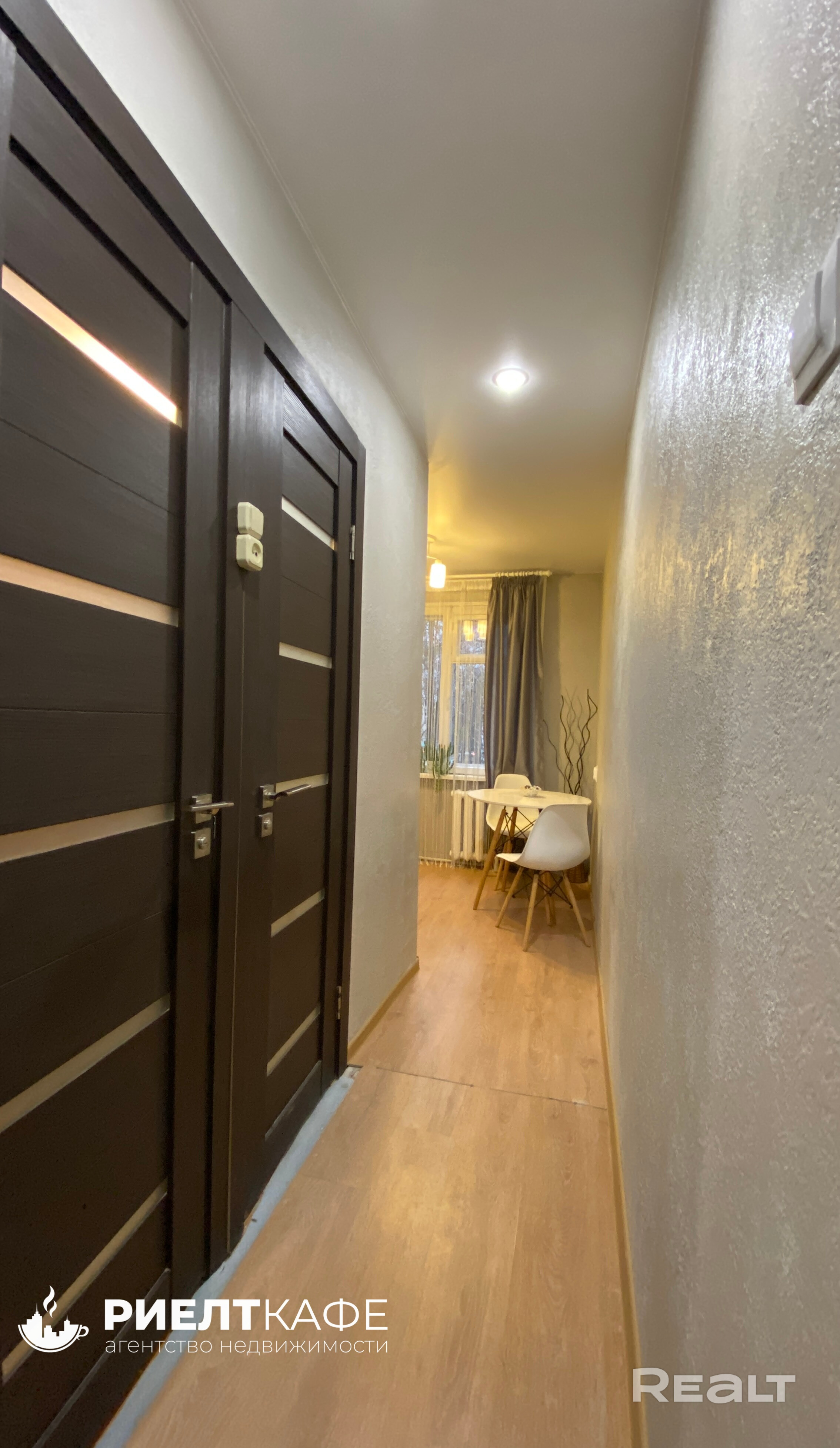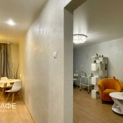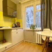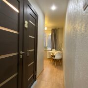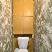 Стены оштукатурены заново, на полах ламинат на деревянном черновом полотне. Сантехника полипропилен, приборы учета новые. Покрытие стен – декоративная штукатурка, окрашена. Потолки натяжные. Окна – деревянные. Балкон остеклен, капитальные добротные не типичные рамы. Межкомнатные двери новые, современные. Кухня оборудована гарнитуром на одну стену, встроена газовая варочная панель Гефест. Есть место и подвод для духового шкафа. Кухня класическая, фурнитура Blum, есть карго. Входная дверь металлическая. Ванна и туалет подготовлены для новой облицовки плиткой, произведен демонтаж старых материалов. На этой стадии ремонт остановлен в связи с ожиданием капитального ремонта дома что дает возможность нового владельца организовать пространство под себя. В коридор куплен новый Шкаф (стоит в упаковке).