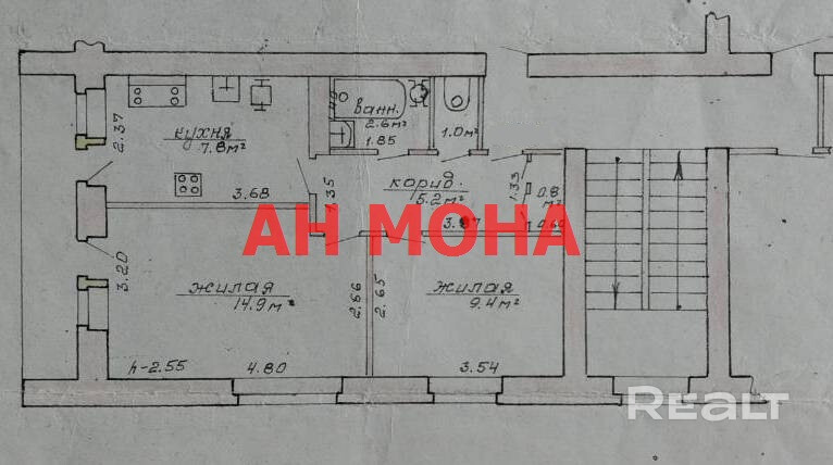 Квартира требует капитального ремонта, находится на 2 этаже 2-х этажного кирпичного дома.