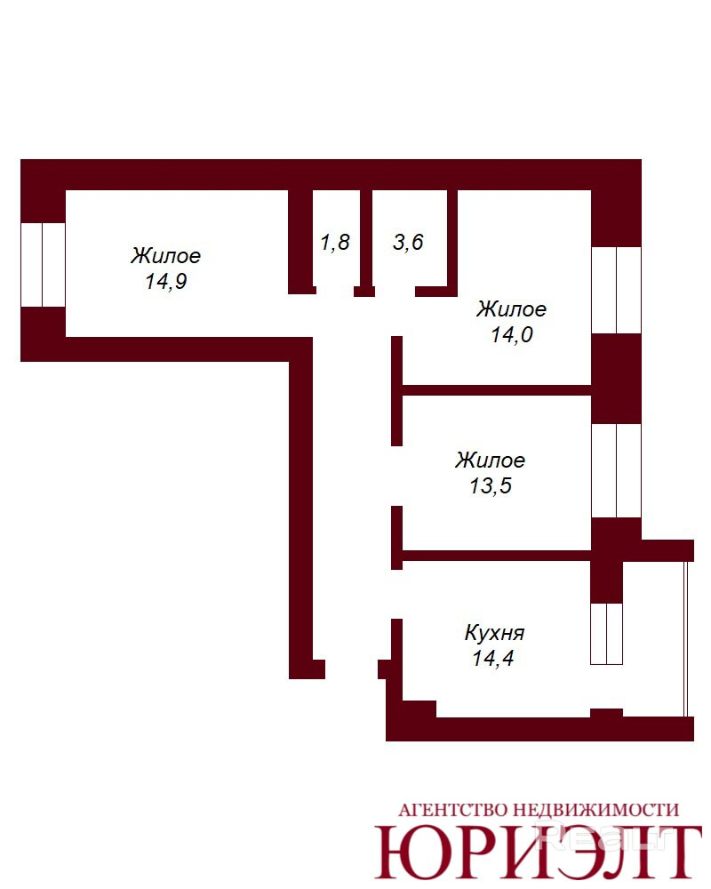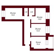 Квартира имеет удобную планировку: большая кухня – 14,2 м2, три жилые комнаты с площадью 14,5 м2, 14,1 м2 и 13,4 м2 с окнами, выходящими на две стороны дома, большой коридор, раздельный санузел, застекленная лоджии с выходом из кухни.