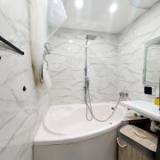 В квартире выполнен современный ремонт. Установлены стеклопакеты ПВХ. Потолки подвесные с точечной подсветкой и выводом под дополнительное освещение. Входная дверь металлическая, межкомнатные – МДФ. Санузел и ванная комната облицованы плиткой, выполнена инсталляция.