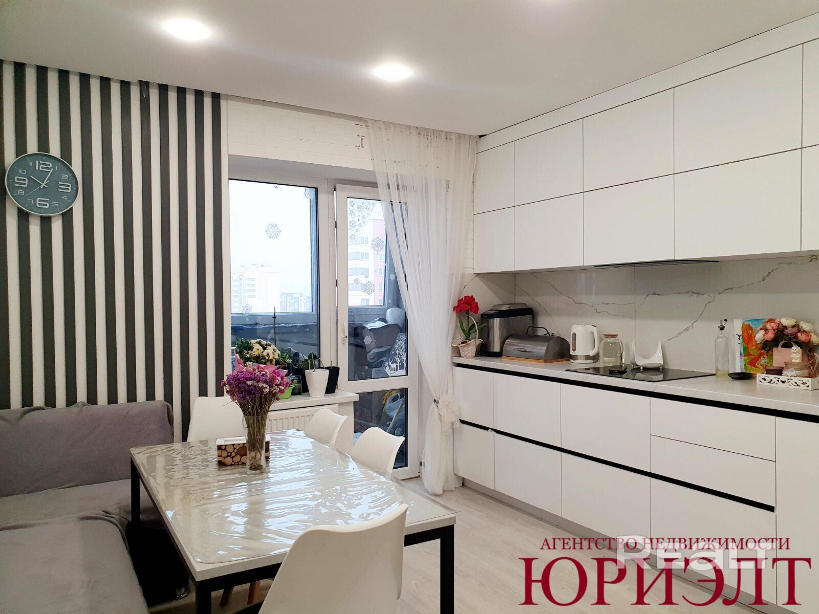 При продаже в квартире остается кухонный гарнитур со всей бытовой техникой (варочная панель и духовой шкаф, остальная мебель - по договоренности.