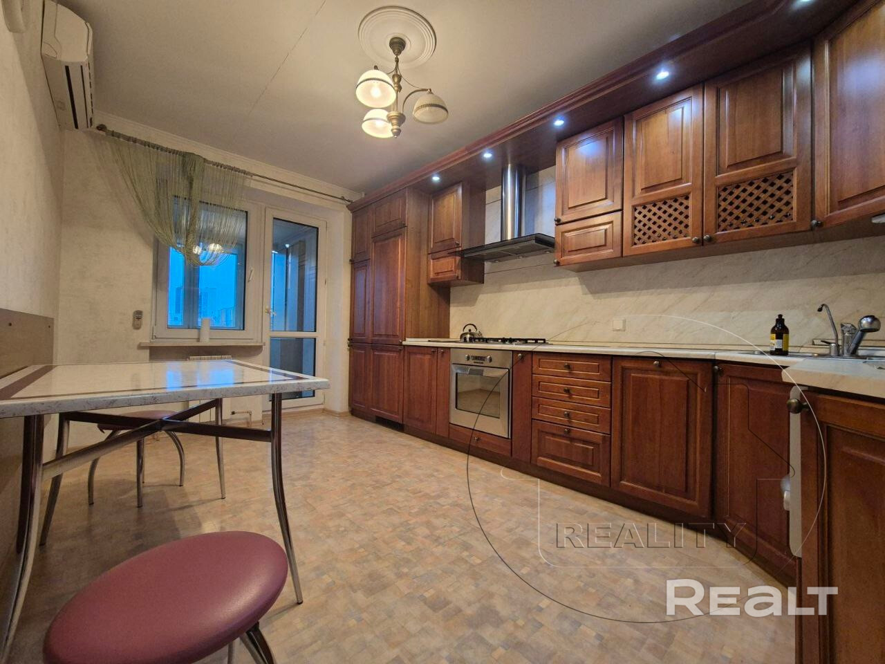 В квартире установлены два кондиционера, имеется частичный подогрев полов, в санузле установлено биде. Кухонный гарнитур из массива дерева, обеденный стол из антивандального искусственного камня.