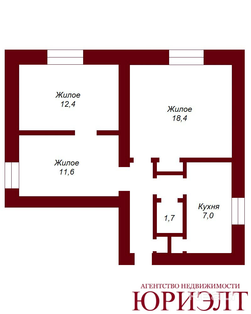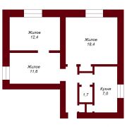 Общая площадь - 59 кв.м., жилая - 42,4 кв.м., кухня - 7,0 кв.м.