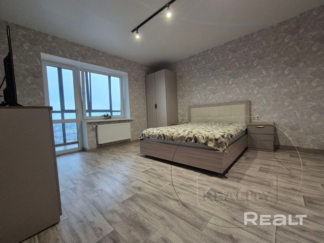 Окна ПВХ (панорамные окна во всей квартире), полы излоностойкий линолеум/плитка, стены оклеены обоями, потолки натяжные, межкомнатные двери экошпон, входная дверь металлическая. Санузел облицован современной плиткой.