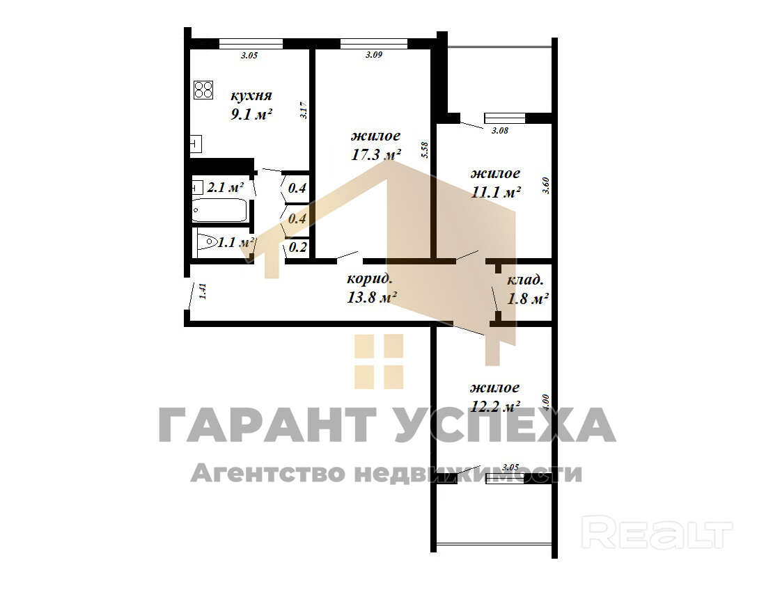 Лот 9261. Брест, ул. Сябровская. Продажа 3-комнатной квартиры
