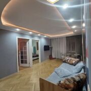 Расположена на 4 этаже 5 - этажного панельного дома 1971 года постройки. Площадь квартиры по СНБ – 55,9 кв. м., общая площадь – 49,5 кв.м., жилая – 34,2 кв.м, площадь кухни – 5,5 кв.м. В квартире 2 застеклённых балкона, санузел облицован плиткой современного образца. В квартире установлены: окна ПВХ, на полу плитка и паркет. В квартире заменены сантехнические трубы, а также выполнен косметический ремонт, натяжные потолки. Окна выходят на частный сектор солнечной стороны. В зале сделал двухуровневый потолок с подсветкой .За счёт паркета , полы в квартире всегда тёплые, зал просторный и очень уютный. Мебель частично остаётся , что позволит новым хозяевам заехать в квартиру без дополнительных вложений. Дом находится в глубинке двора и оборудован домофоном.