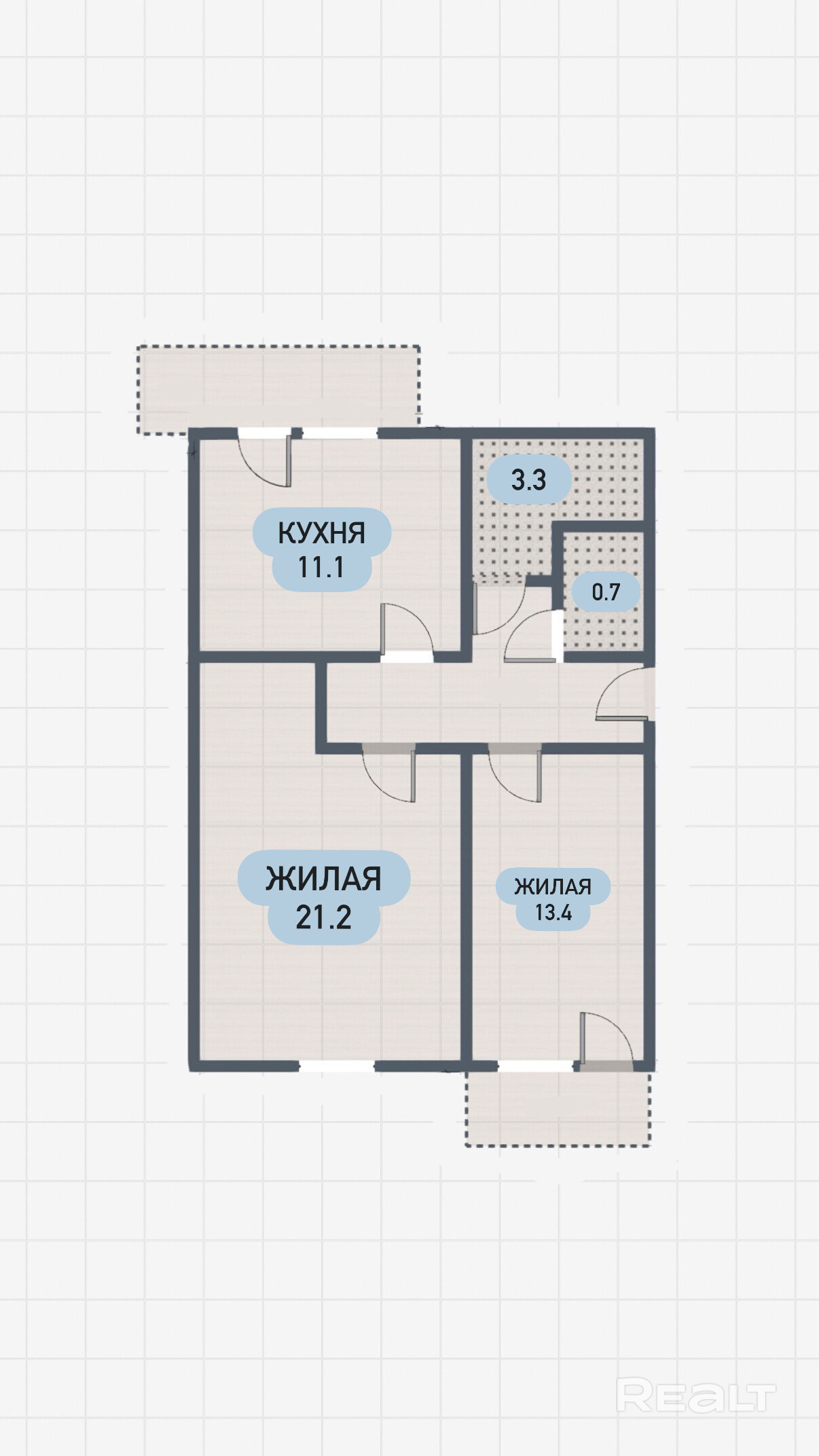 Площадь квартиры 60 м2. Светлые и просторные комнаты 21,2 м2 и 13,4 м2. Большая кухня 12 м2. Два балкона: с выходом из кухни и жилой комнаты, совмещенный с/у. В квартире выполнен качественный и современный ремонт. Потолки — натяжные, с современным led освещением. Сделана стяжка пола, полная замена инженерной и чистовой сантехники и электрики. На каждое помещение идёт отдельный автомат с распределительного щитка, а также установлены отдельные автоматы на стиральную машину, духовку и плиту. Для удобства и комфорта в комнатах установлены проходные выключатели. На полах в комнатах — ламинат. В коридоре, санузле и кухне — керамогранит. Стены отделаны качественными обоями с эффектом шелкографии и декоративной штукатуркой, в ванной — керамогранит. Отопление — центральное. Также есть 2 больших балкона (с кухни и из спальни).