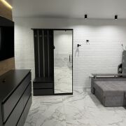 В квартире выполнен современный качественный ремонт, на полу плитка, на стены нанесена декоративная штукатурка, в ванной и санузле плитка, остаётся вся мебель и техника. Тихий двор, рядом с домом детский сад, в шаговой доступности магазины, кафе, пиццерия, рынок, ЦУМ.