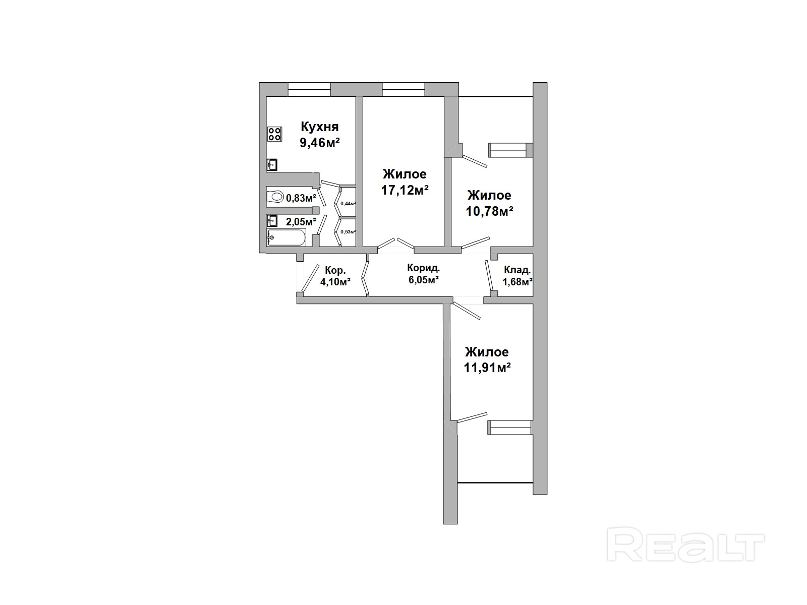 Трехкомнатная квартира на пятом этаже 5-этажного панельного дома 1982 года постройки в восточной части г. Бреста. Общая площадь 70,1 кв.м, жилая 39,8 кв.м. , кухня 9,5 кв.м. Установлены стеклопакеты (в кухне и в зале), окна выходят на разные стороны. В квартире частично произведен ремонт: окрашенные потолки, стены оклеены обоями, санузел облицован современной керамической плиткой, заменена сантехника, полотенцесушитель, ванна. В подъезде поддерживается порядок. Дом расположен в глубине двора. Район с развитой инфраструктурой, рядом с домом находятся: продовольственный магазин, аптека, детский садик, поликлиника. Хорошая транспортная развязка, в шаговой доступности остановка общественного транспорта.