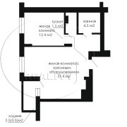 Квартира расположена на 10 этаже. Общая площадь 52,1 м2, жилая площадь 43,8, кухня 8 м2 совмещена с гостиной.
