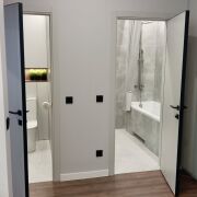 При осуществлении ремонта использовались только качественные и современные материалы. В санузле и ванной установлена плитка и качественная сантехника. В ванной есть стена с подогревом для сушки полотенец. В комнатах на полу — ламинат, межкомнатные двери с немецкой фурнитурой и магнитными замками. Входная дверь металлическая. В коридоре установлен встроенный шкаф и кондиционер.