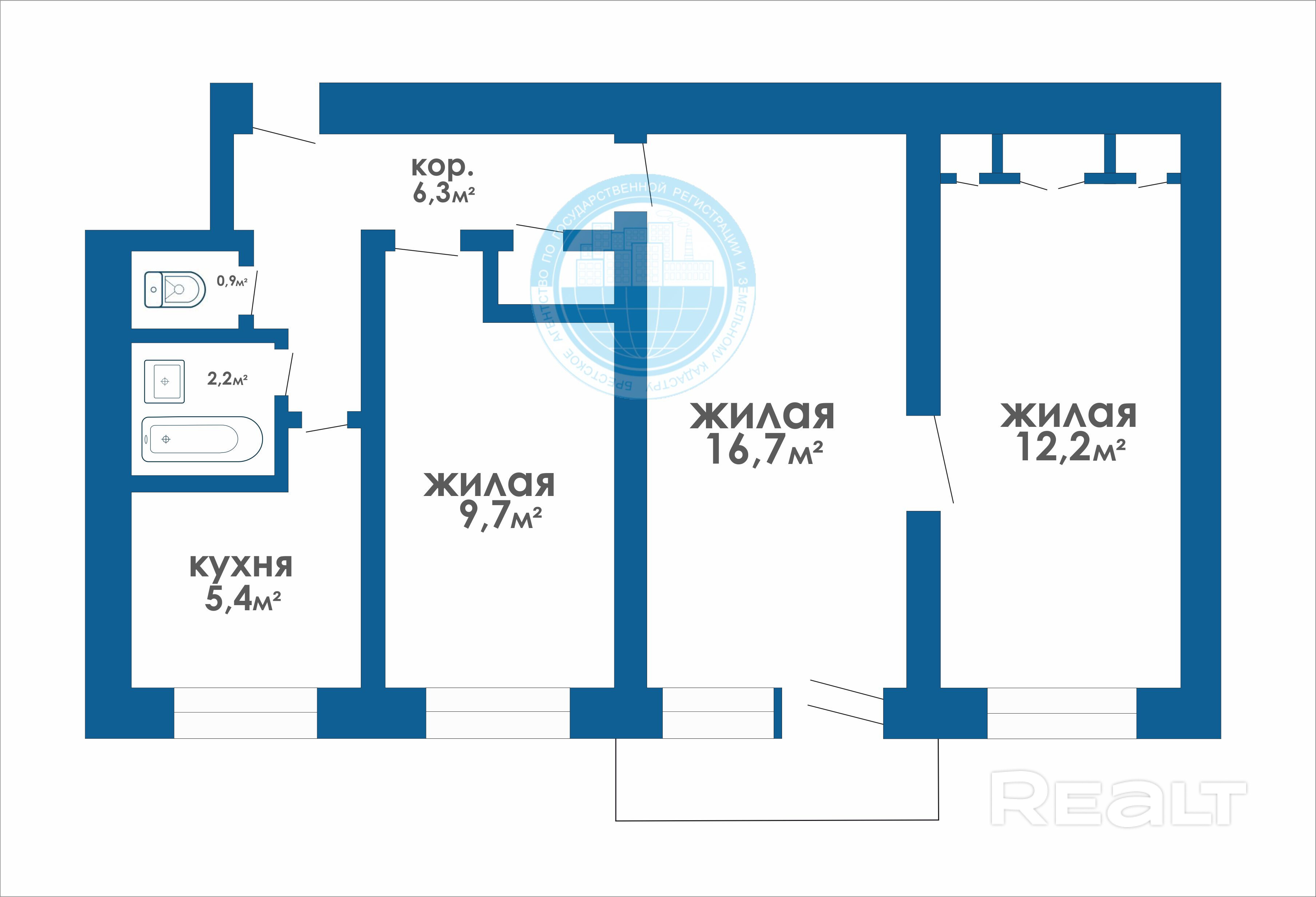 Этаж 5/5. Общая площадь квартиры – 55,5 кв.м, жилая – 38,6 кв.м, кухня – 5,4 кв.м.