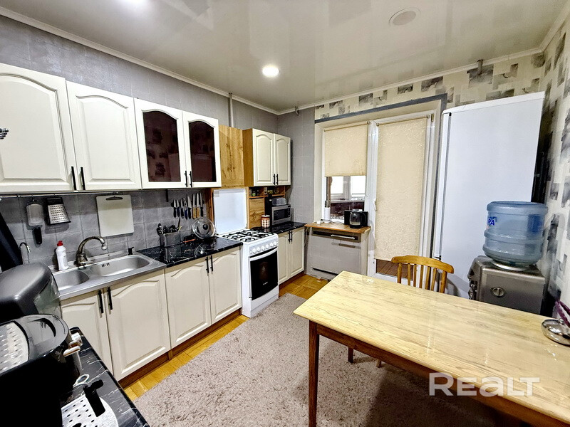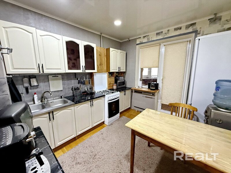 Квартира в отличном состоянии: натяжные потолки, полы – дубовый паркет, стены оклеены обоями. Санузел облицован современной керамической плиткой, заменена сантехника, полотенцесушитель. Домофонная связь. Обустроенная игровая детская площадка, есть парковка для автомобилей, хорошо развита инфраструктура. Рядом находятся школы, детские сады, рынок, гипермаркет САНТА, удобное транспортное сообщение позволяет быстро добраться в любую часть города.