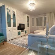 Квартира делалась под себя, частично осовременена, аккуратная и чистая. Мебель встроенная останется новым владельцам. Ванная комната полностью обновлена, и выполнена изыскано и современно, с мебелью на заказ. Туалет оклеен обоями, есть возможность воплотить свой проект.