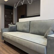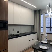 Расположена на 10 этаже 10 - этажного монолитного дома 2025 года постройки. Площадь квартиры по СНБ – 52,1 кв. м., общая площадь – 49,6 кв.м., жилая – 43,8 кв м. В квартире панорамная лоджия, на полу : дорогостоящий ламинат , и плитка с мраморным покрытием. В изолированной комнате помимо основного освещения есть источники дополнительного света, а также подвесная консоль с зеркалом и подсветкой. Кровать с мягкой спинкой и ортопедическим матрасом. Межкомнатные двери выполнены из немецкой фурнитуры и магнитными замками. В санузле итальянская плитка современного образца, для удобного хранения бытовых принадлежностей сделан шкафчик с подсветкой и системой push to open. В ванной комнате установлены две раковины, два овальных зеркала с подсветкой, вместо полотенцесушителя- тёплая стена. В гостиной совмещённой с кухней подвесная консоль для хранения принадлежностей, стильный диван. Весь кухонный гарнитур и встроенная к нему техника остаются: посудомоечная машина, индукционная плита, микроволновая печь с интернетом, кондиционер с WI-FI, телевизор, встроенный холодильник, посуда. Подключена система « Алиса», с помощью которой можно управлять техникой. На случай отключения горячей воды, есть проточный водонагреватель. В коридоре шкаф для хранения вещей. Квартира полностью укомплектована для новых хозяев. Дополнительных вложений не требует! Всё, что вы видите на фото – остаётся. В доме расположено несколько кофеен, новая, безопасная детская площадка, закрытая территория для жильцов, а также места для парковки. Через дорогу находится гребной канал. Отличный район, где есть всё – школа, детский сад, магазины, рынок, аптеки , кафе, остановка общественного транспорта. Небольшой торг уместен.