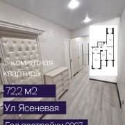 Покупая этот объект, Покупатель не платит агентству комиссию! В мкр Ковалево на ул Ясеневая продается современная 3х комнатная квартира. Квартира площадью 72,2/67/41,8/9,2м2 назодится на 3 этаже 9-этажного панельного дома 2007 года постройки. В квартире 3 изолированные комнаты(17,1, 12,3 и 12, 4 м2), а также 2 застекленные лоджии, из кухни и из жилой комнаты. Санузел раздельного типа. В квартире современный ремонт:натяжные потолки, полы-ламинат и плитка, стены оклеены светлыми обоями, в коридоре - декоративная штукатурка. Межкомнатные двери светлых тонов -экошпон. Входная металлическая дверь. Окна ПВХ. Ванная комната подготовлена под установку плитки. Подъезд дома чистый, домофон, видеонаблюдение, пандус. Двор благоустроен, с парковочными местами и детской площадкой. Вся необходимая инфраструктура в в шаговой доступности:школа, детсад, магазины, остановки. Код объекта 26025