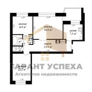 Общая площадь квартиры составляет 66,3 кв.м с функциональной планировкой: изолированные комнаты, раздельный санузел. Высота потолков 2,5 м.